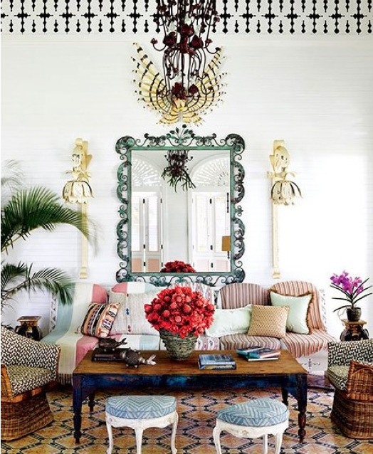 As you know from my last few posts I am craving spring: spring gardens, spring dishes, and now a spring vacation, anywhere warm and relaxing. Within an hour of posting the beautiful Palm Beach Dodi Thayer lettuce ware dishes for Tory Burch, I saw this beachfront getaway designed by Celerie Kemble. It was a breath of fresh air... So grab a Coke-Zero or an Evian, kick your shoes off and join me in designer Celerie Kemble's Dominican Republic getaway, with a laid back tropical atmosphere and Caribbean colors ... along with curated items to inspire a little island life into your home. Enjoy!
